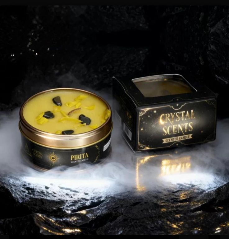 Vela premium AROMA inspirada en la Pirita, con trocitos del mineral y un mix de hierbas en su interior: un producto premium que une vela + mineral + hierbas para una experiencia aromática y visual única. Su fragancia de Limón es fresca, brillante y purificadora, ideal para renovar el ambiente y aportar claridad y energía positiva.